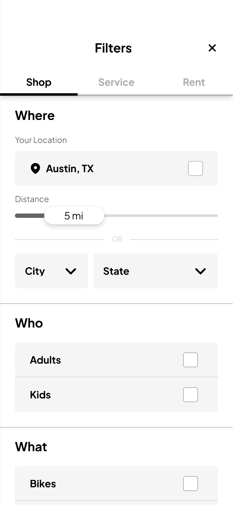 Users with an array of needs are faced with piecemeal processes-- finding, sifting through, and consulting multiple retailers in varying locations all to purchase and maintain or rent their bikes.